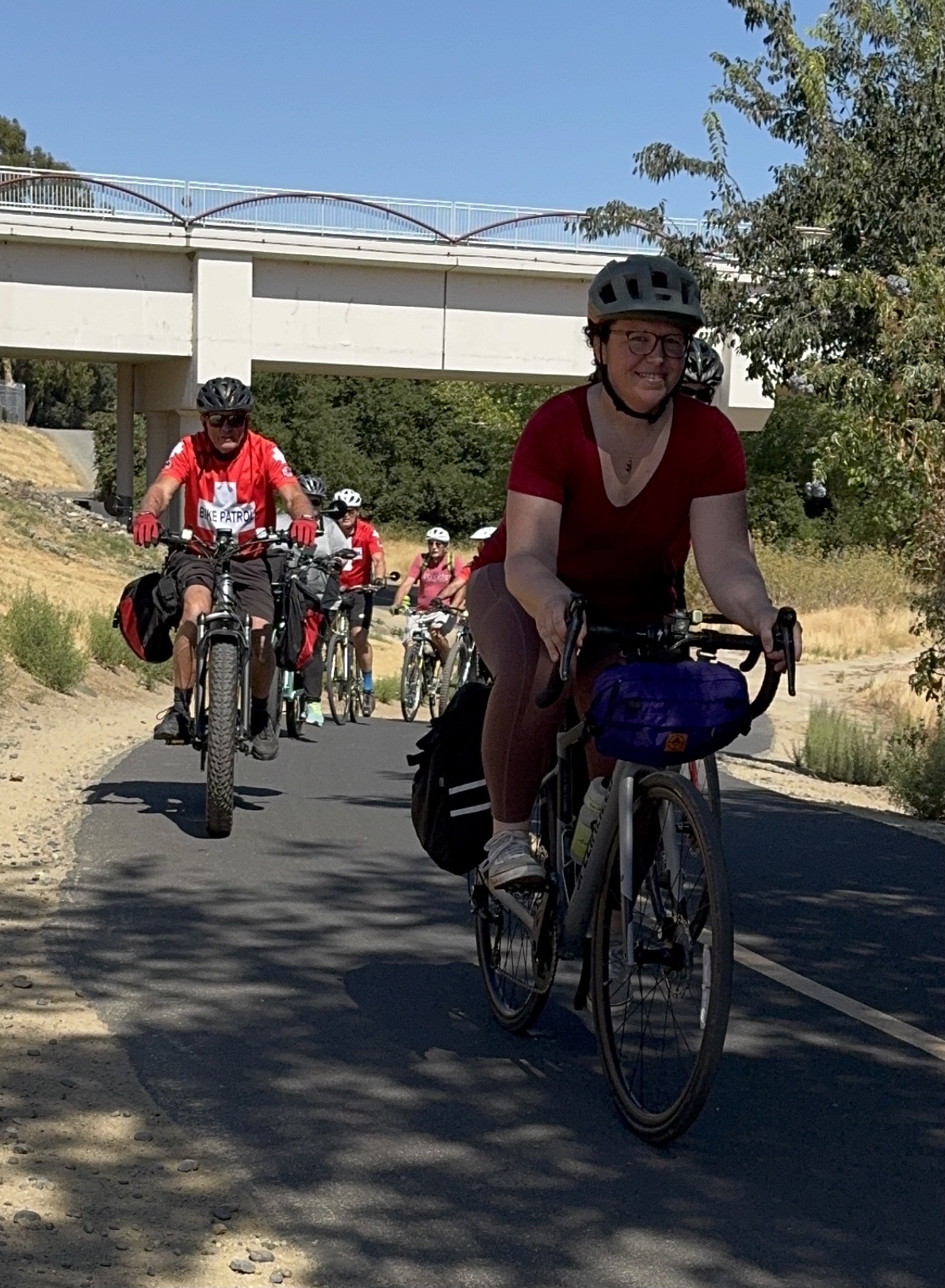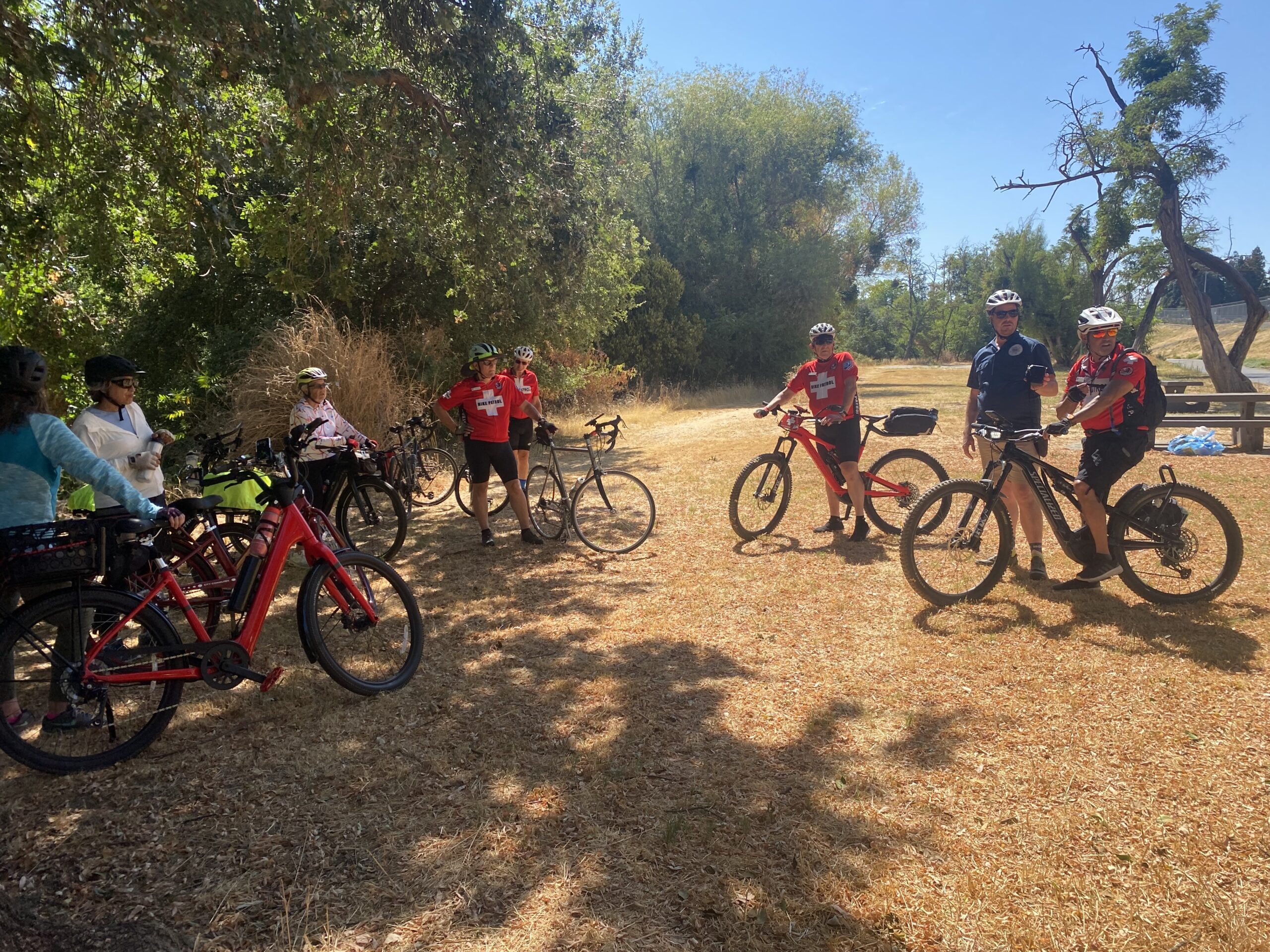 30+ cyclists came on the July social ride where we were joined by the Bike Patrol, a group that specializes in public safety and first aid along Sacramento's bike trails.