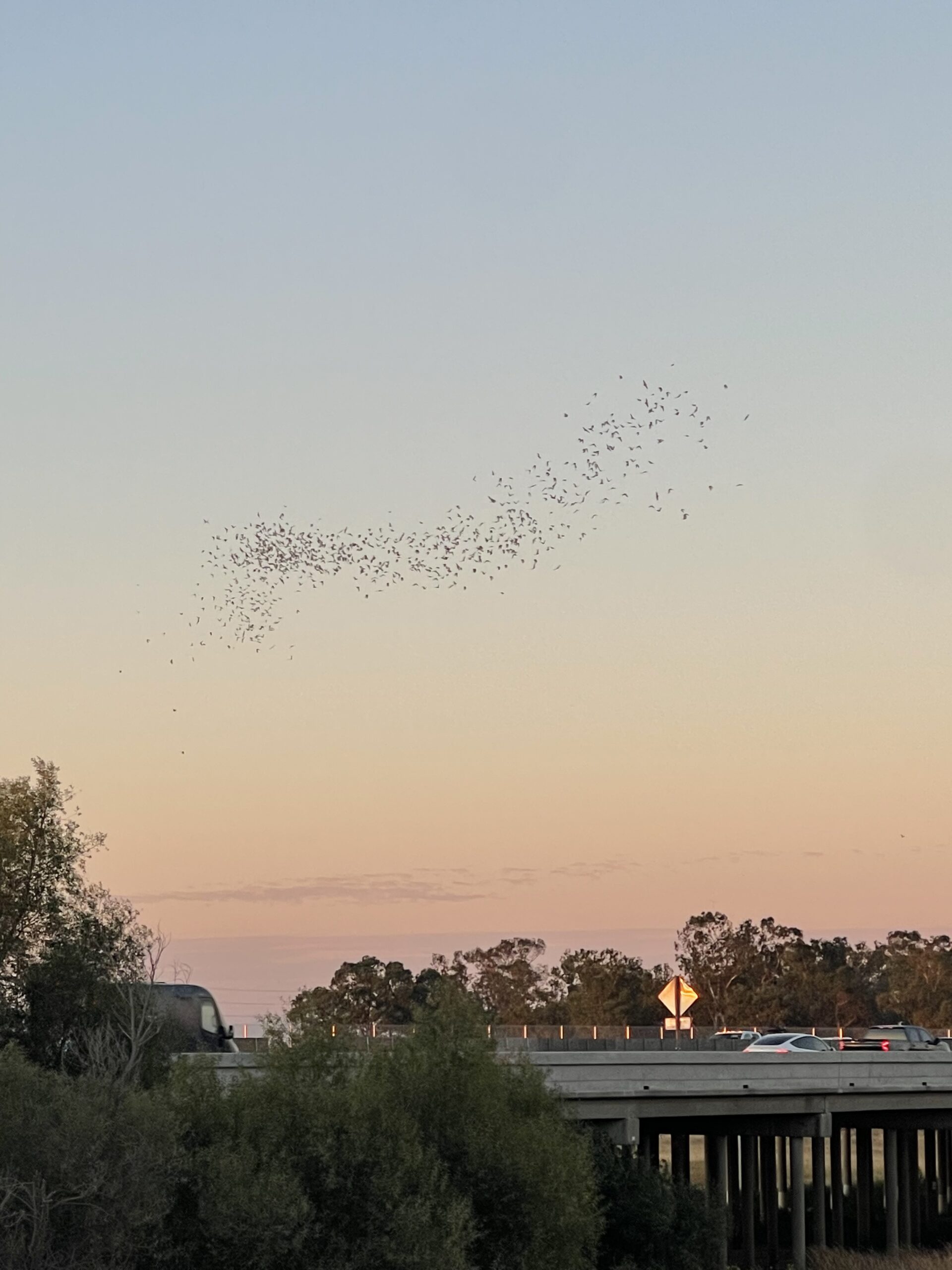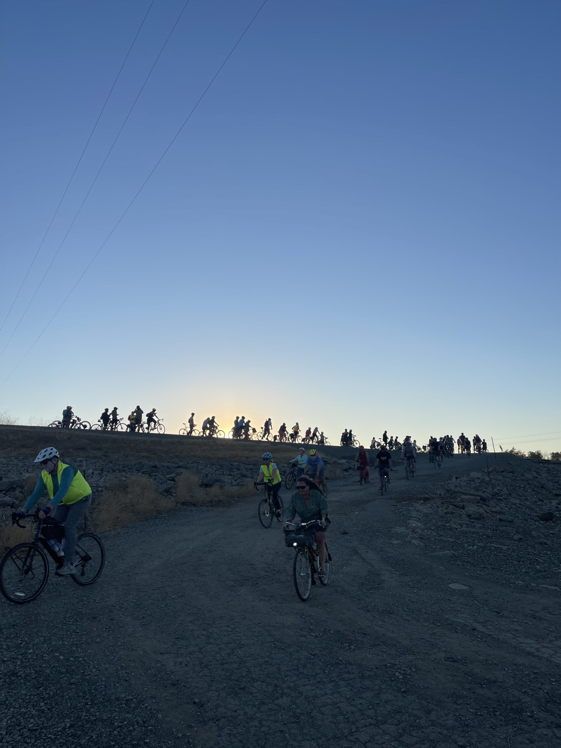 SABA organized an evening social ride to the Yolo Causeway to watch 250,000 Mexican Free-tailed bats fly out for their evening fiesta. The bats nestle between the Causeway's expansion joints. 90 cyclists joined the Bat Ride and were treated to an awesome sight